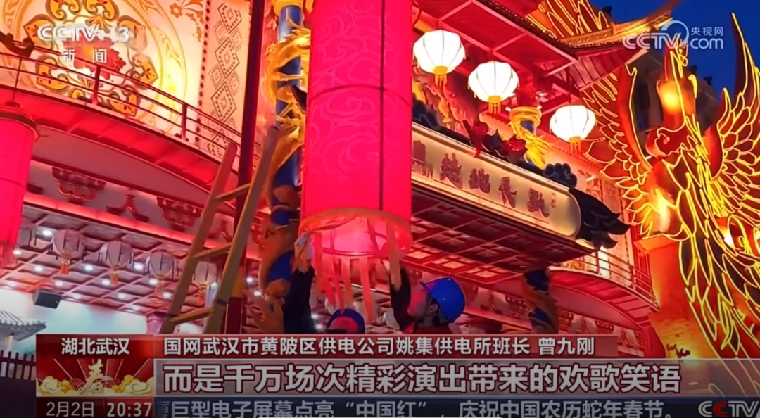 2月2日,央視東方時空欄目播出的《湖北武漢:保障景區(qū)正常用電,守護城市流光溢彩》以黃陂木蘭不夜城為切入點,展現(xiàn)熱鬧繁華背后堅守一線的工作者。