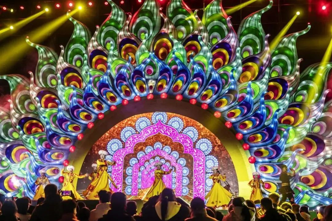 木蘭不夜城大型荊楚文化演藝街區(qū)《楚地長歌》開街迎客。荊楚美學場景、大型實景劇目、沉浸式互動游覽帶來全新打卡體驗。十場大型煙花秀,七彩祥云和十二種造型的煙花,點亮新春之夜。