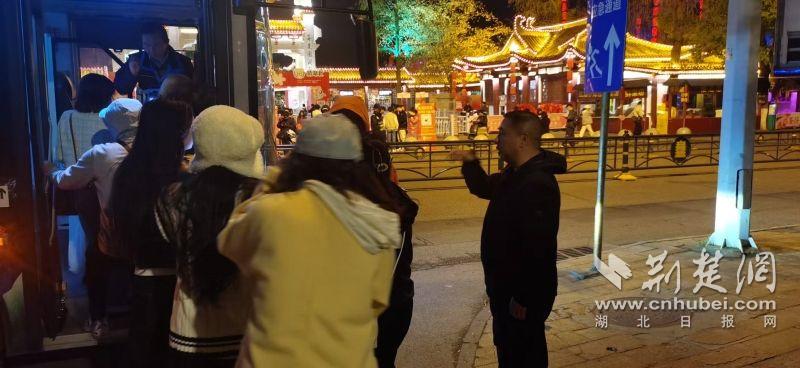 19時20 分,首輛增援公交車抵達(dá)櫻園門口。城管執(zhí)法隊員現(xiàn)場指揮,維持秩序,并做好解釋安撫工作,引導(dǎo)游客有序乘車。隨后,補充車輛接力跟進(jìn)。20時點30 分,最后一批游客乘上公交車,順利返程。