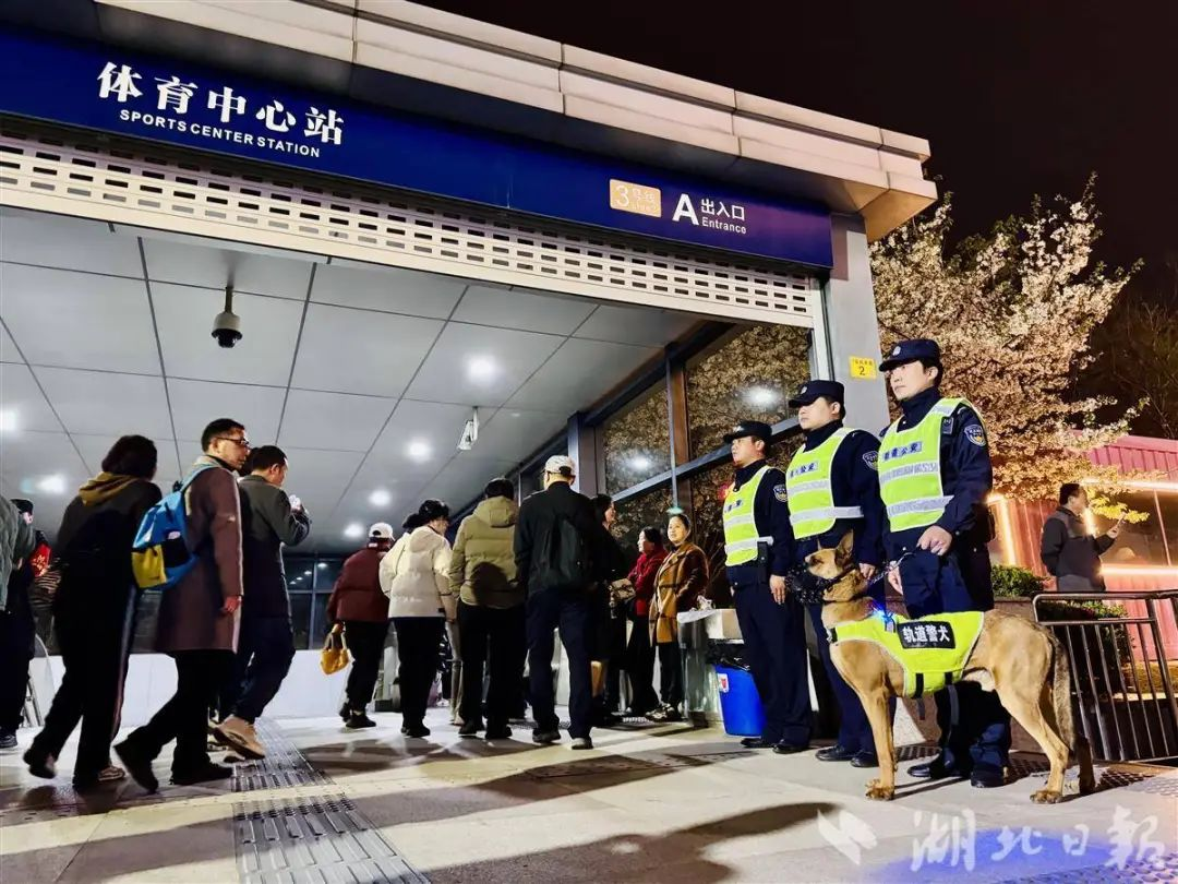 晚上10時(shí)許,隨著演唱會結(jié)束,萬人疏散大考正式開始。武漢體育中心出口同時(shí)亮起引導(dǎo)牌,執(zhí)勤民警用LED燈牌組成“方向指引”,將人流精準(zhǔn)導(dǎo)向公交、地鐵、出租車等不同區(qū)域。