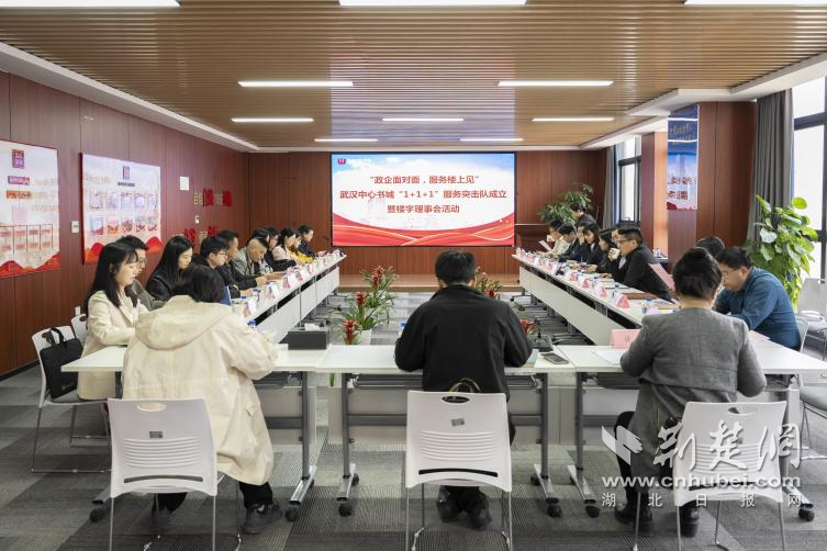 3年前,武漢中心書(shū)城在菱角湖畔拔地而起,街道第一時(shí)間選派了2名業(yè)務(wù)骨干駐點(diǎn)書(shū)城招商引商,派駐4名經(jīng)驗(yàn)豐富的專職黨建指導(dǎo)員做好聯(lián)絡(luò)服務(wù)、黨建指導(dǎo)、需求收集等工作。隨著樓宇企業(yè)不斷發(fā)展,需求愈發(fā)多元化,街道打破地域、部門界限,強(qiáng)化樓宇服務(wù)力量,組建了這支由區(qū)經(jīng)科局干部、街道干部、社區(qū)黨員組成的“1+1+1”突擊隊(duì)。