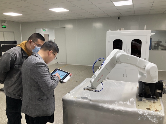 赤壁一制造業(yè)企業(yè)內(nèi),開(kāi)發(fā)人員正調(diào)試設(shè)備。黃錚 攝