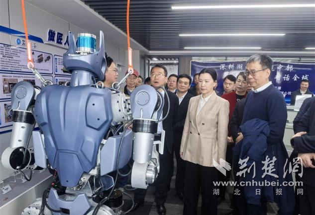 這是湖北省首個(gè)機(jī)器人領(lǐng)域技術(shù)創(chuàng)新中心,該中心由湖北科峰智能傳動(dòng)股份有限公司牽頭,聯(lián)合華中科技大學(xué)、武漢大學(xué)等20余所高校院所及產(chǎn)業(yè)鏈頭部企業(yè)共建,聘請(qǐng)中國工程院院士陳學(xué)東擔(dān)任戰(zhàn)略咨詢委員會(huì)主任、中國科學(xué)院院士劉勝擔(dān)任學(xué)術(shù)委員會(huì)主任。這標(biāo)志湖北在機(jī)器人核心技術(shù)創(chuàng)新與產(chǎn)業(yè)轉(zhuǎn)化上邁出關(guān)鍵一步。今年亮相“新春第一會(huì)”的“天問”1號(hào)人形機(jī)器人,由武漢大學(xué)劉勝院士團(tuán)隊(duì)研發(fā)。全身關(guān)節(jié)有30個(gè)自由度,靈巧手有7個(gè)自由度。它的傳感器、靈巧手、仿生關(guān)節(jié)和芯片等核心部件,80%實(shí)現(xiàn)了“鄂研鄂產(chǎn)”。