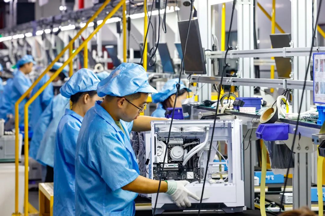 “星閃是新一代近距離無線連接技術(shù),傳輸速度和抗干擾性遠(yuǎn)超藍(lán)牙和Wi-Fi?!迸噬萍贾饕?fù)責(zé)人介紹,攀升科技實(shí)現(xiàn)柔性化生產(chǎn),讓生產(chǎn)線上每臺(tái)電腦都不一樣,顧客在網(wǎng)上下單,基本實(shí)現(xiàn)24小時(shí)內(nèi)發(fā)貨,完全滿足用戶大規(guī)模個(gè)性化定制。