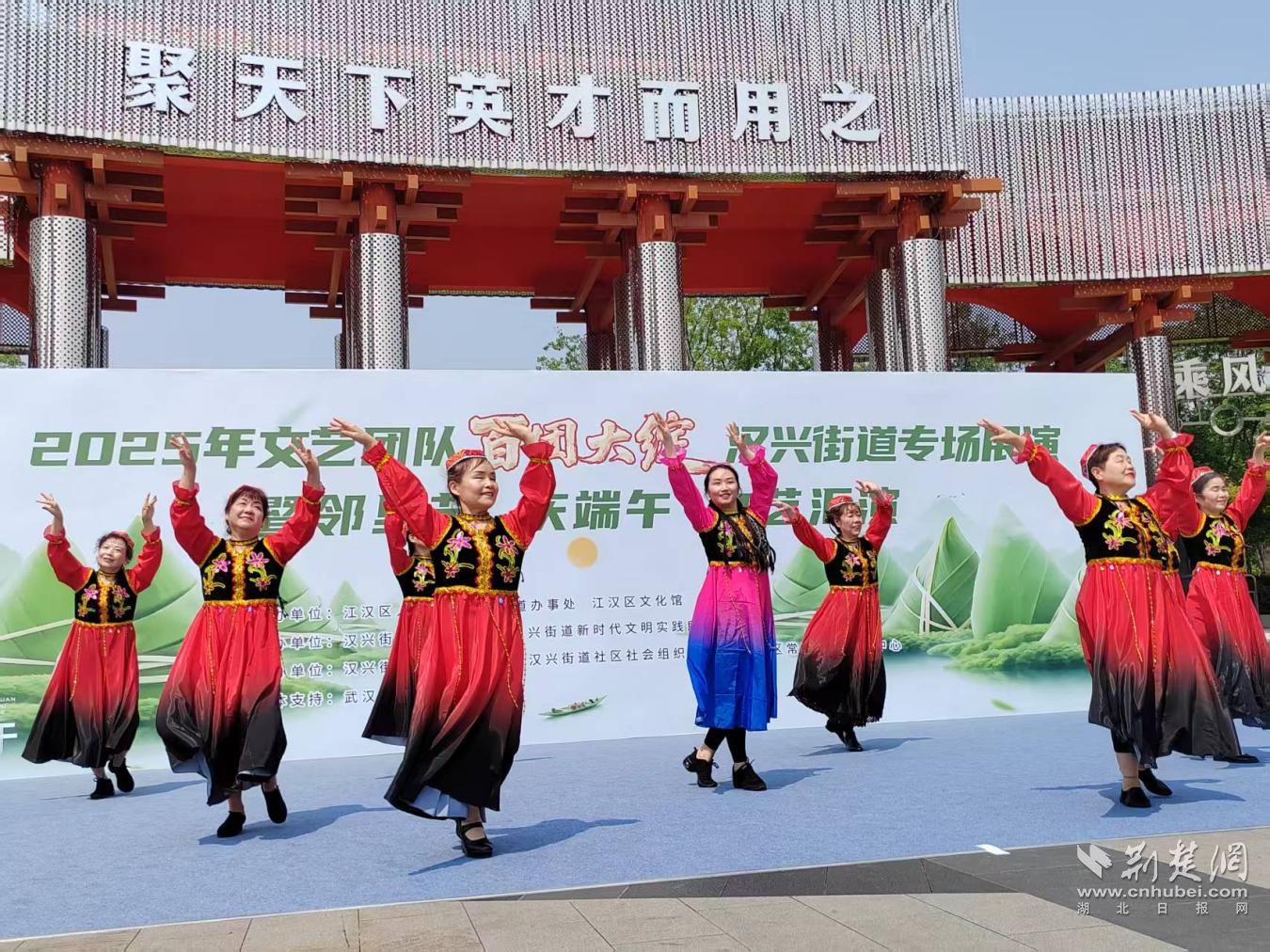 荊楚網(wǎng)(湖北日?qǐng)?bào)網(wǎng))訊(記者 何婧 通訊員 鄒瑜 徐曼)5月24日,江漢區(qū)漢興街道“百團(tuán)大綻”專場(chǎng)展演暨鄰里節(jié)慶端午文藝匯演在常青公園人才廣場(chǎng)舉行。轄區(qū)居民們?cè)跉g歌熱舞中迎接濃情端午,共享一場(chǎng)文化盛宴。