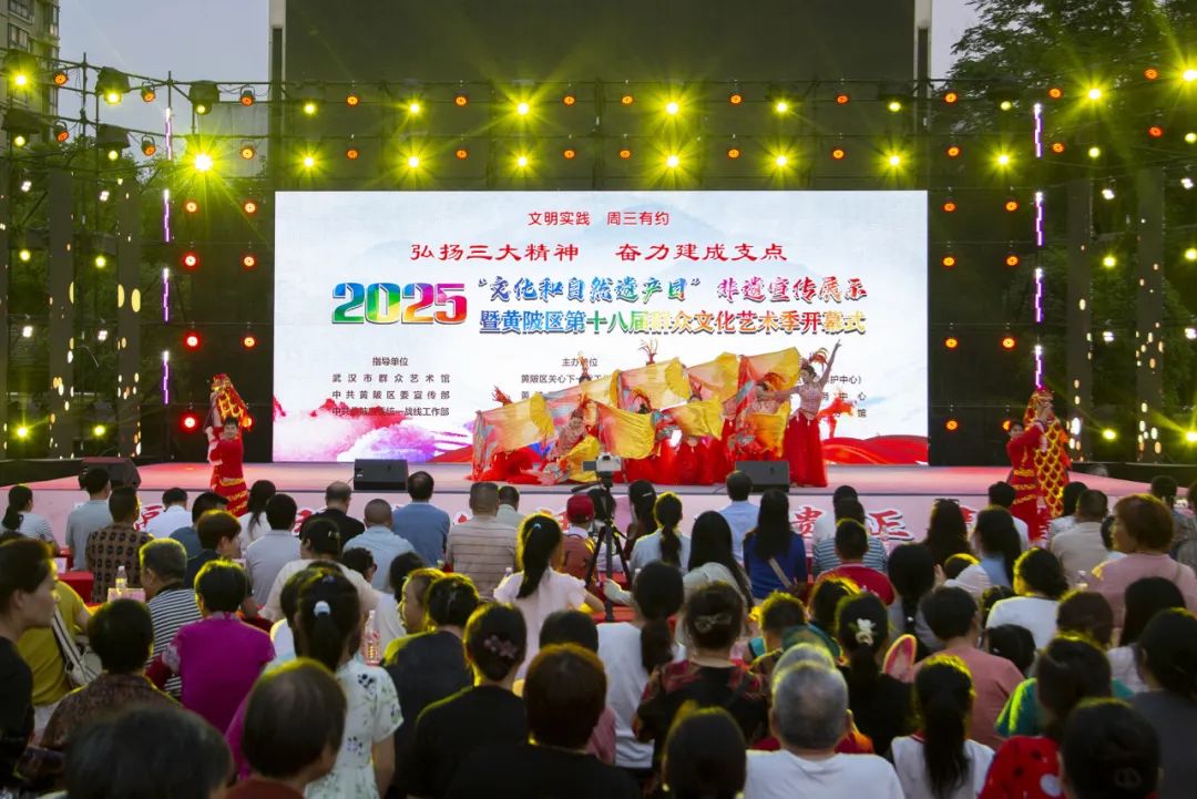 6月11日晚,2025年“文化和自然遺產(chǎn)日”非遺宣傳展示暨第十八屆群眾文化藝術(shù)季在黃陂區(qū)前川街黎元洪廣場開幕。通過多元化的非遺展示與文藝演出為市民帶來一場沉浸式的文化盛宴。