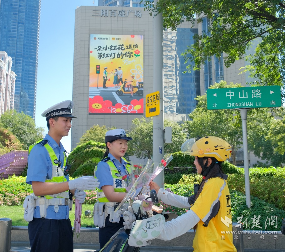 荊楚網(wǎng)(湖北日?qǐng)?bào)網(wǎng))訊(通訊員小雨)8月29日七夕當(dāng)天,美團(tuán)在西寧、鄭州、蘭州、深圳、武漢等全國16座城市同步發(fā)起“送你一朵小紅花”交通安全倡導(dǎo)行動(dòng)。各城市交警在十字路口、斑馬線前為遵守交通規(guī)則的騎手和市民送上鮮花及反光貼紙,傳遞“安全出行”理念?;顒?dòng)現(xiàn)場(chǎng),近萬人領(lǐng)取到倡導(dǎo)交通安全文明的“小紅花”。據(jù)了解,這是美團(tuán)在全國發(fā)起的騎手交通安全正向激勵(lì)系列活動(dòng)之一,旨在推動(dòng)騎手交通安全意識(shí)提升與權(quán)益保障的常態(tài)化。