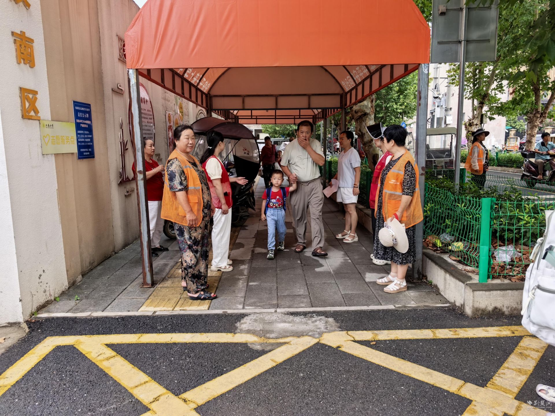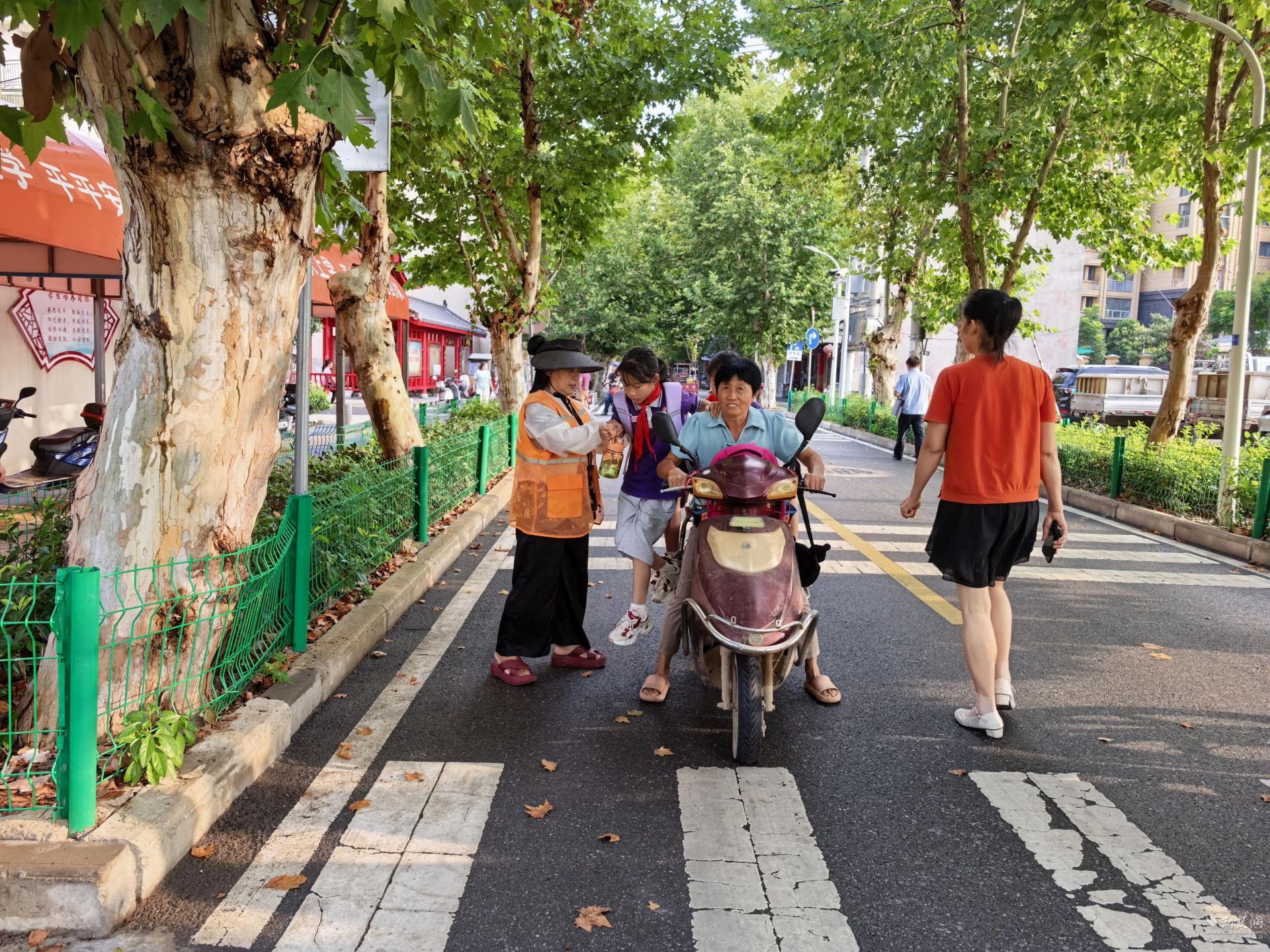 “寶貝別緊張,阿姨送你到教室門口。” 社區(qū)工作人員牽著一名背著卡通書包的一年級新生,耐心安撫著哭鬧的孩子,微笑著向焦慮的家長點頭示意。針對初次入學(xué)的低年級學(xué)生,社區(qū)特別設(shè)立 “愛心護送崗”,由專人一對一陪護穿過人行道,這些細致舉動讓校門口不時響起家長們的道謝聲。
