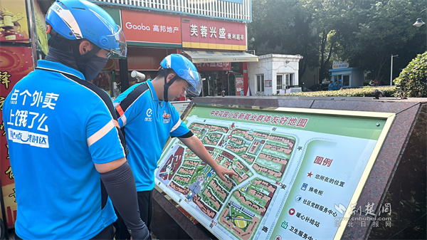 此外,社區(qū)還貼心優(yōu)化配送環(huán)境。小區(qū)出入口立起全景圖立牌,清晰標(biāo)注配送路線和臨時停車位;主干道增設(shè)24個指引牌,44棟樓都裝上了夜光樓棟牌,路口盲區(qū)的凸面反光鏡,守護著小哥的騎行安全。不僅如此,社區(qū)還經(jīng)常組織小哥們開展活動,盛夏送清涼時,遞上防暑物資;趣味運動會上,一起玩“大錘打氣球”“摸石過河”,歡聲笑語中拉近了彼此的距離。