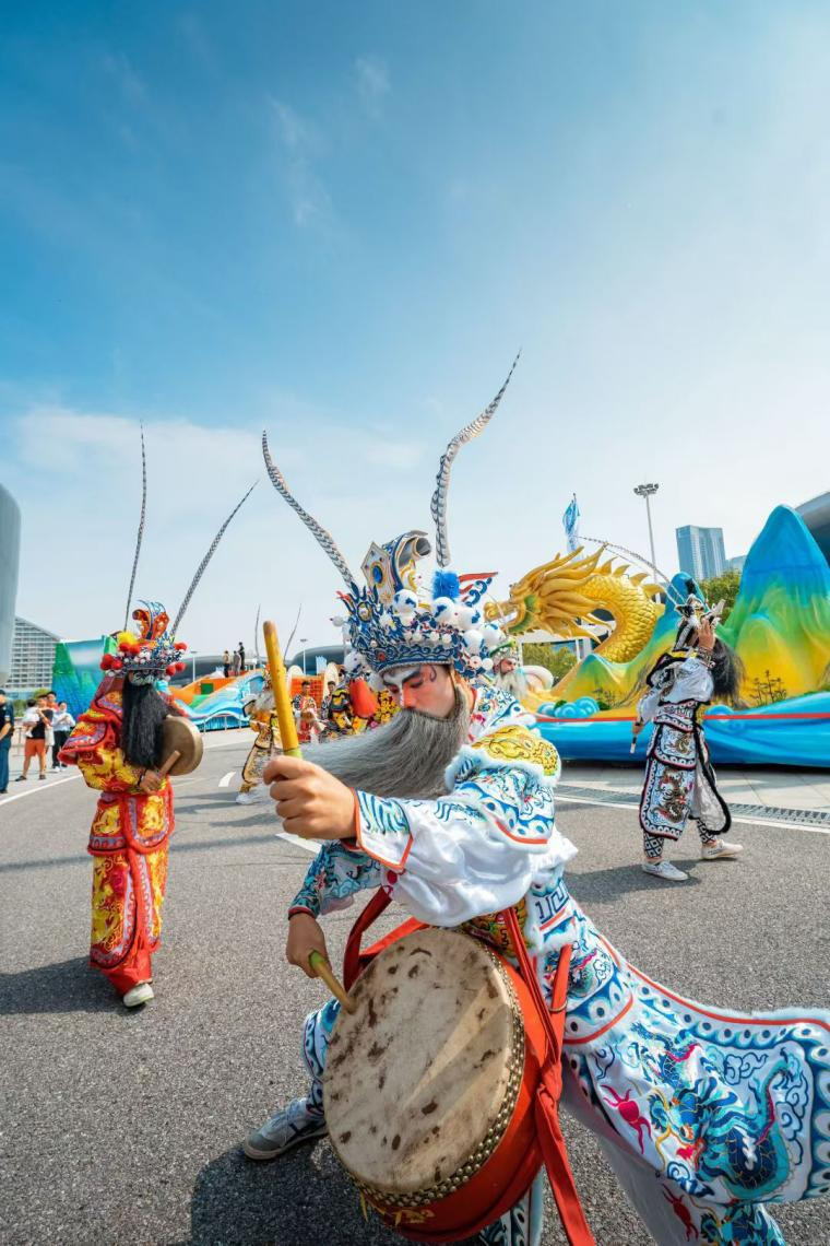 在展館內(nèi)外可以看到,各展區(qū)人頭攢動,在廣東長隆展區(qū),兩點半的演出還沒開始,人流已經(jīng)里三層外三層打圍。伴著強勁律動,外籍演員們還邀請觀眾共舞互動,現(xiàn)場氣氛爆棚。展館內(nèi)部,韓國館、陜西館等展位的熱舞、非遺展演成了焦點。多種多樣的智能設(shè)備體驗等,更成為小朋友的樂園。