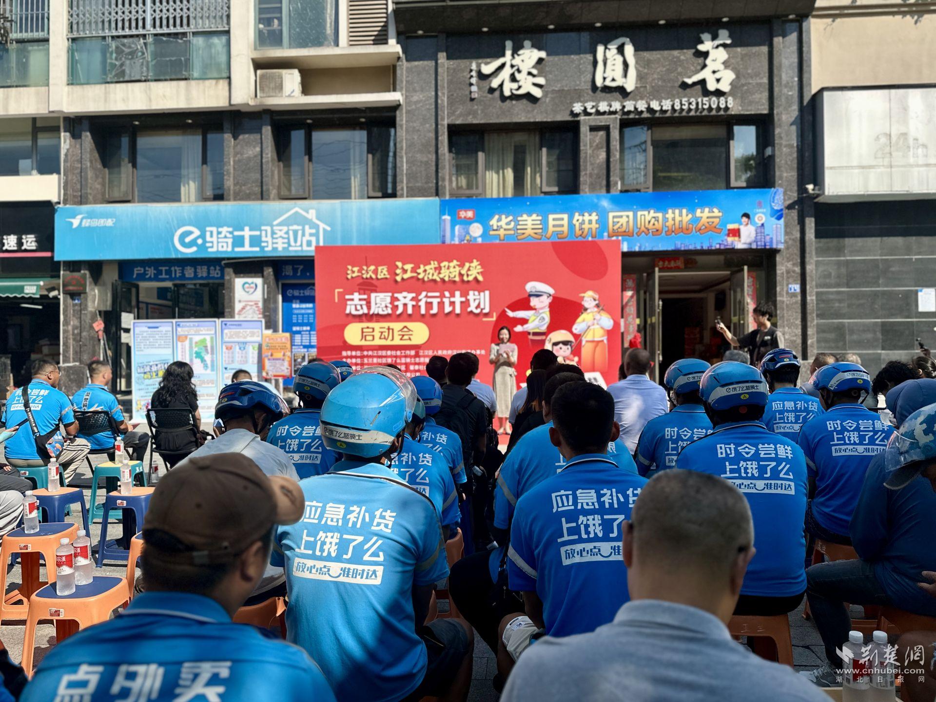 荊楚網(wǎng)(湖北日報(bào)網(wǎng))訊(記者 何婧 通訊員 黃劍平 宗昌瑞 劉心悅)9月16日上午,江漢區(qū)第六屆“社志同行·益匯江漢”公益創(chuàng)投項(xiàng)目——“江城騎俠·志愿齊行計(jì)劃”在紅旗渠路餓了么藍(lán)騎士驛站正式啟動(dòng)。武漢市委社會(huì)工作部、江漢區(qū)委社會(huì)工作部、區(qū)總工會(huì)等相關(guān)單位負(fù)責(zé)人,以及餓了么武漢分公司、愛心企業(yè)和社會(huì)組織代表齊聚一堂,與騎手志愿者們共同見證這一公益新起點(diǎn)。