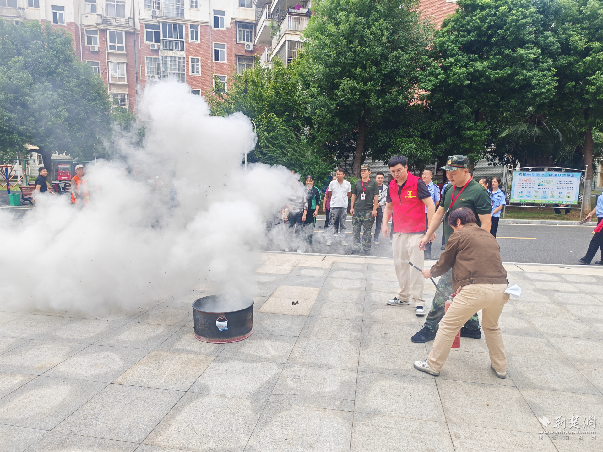 為了檢驗學習成果,現(xiàn)場還模擬了煙霧彈火災現(xiàn)場,所有參訓人員用濕毛巾捂住口鼻,低頭彎腰有序開展逃生,“手把手”指導人員正確逃生安全區(qū)域,保證全員“會逃、會防”。同時,社區(qū)同步開展安全救援演練,手把手教學滅火器、消防栓使用方法,讓參與者從“懂知識”升級為“會操作”,提升社區(qū)應(yīng)急處置能力。
