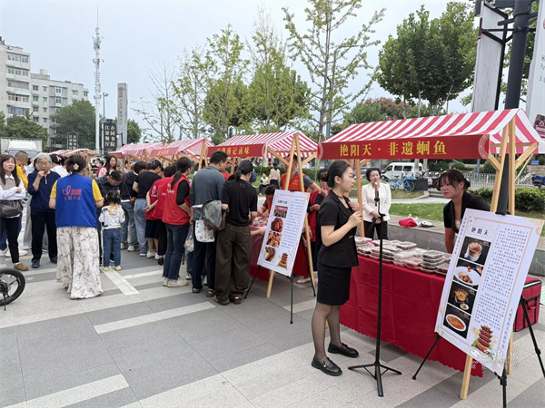 活動(dòng)現(xiàn)場(chǎng)設(shè)置市集區(qū)與演藝區(qū)兩大板塊。市集區(qū)內(nèi)人頭攢動(dòng),轄區(qū)共建單位、音樂企業(yè)與多家商戶積極參與,匯聚特色商品與音樂互動(dòng)體驗(yàn)。大音琴行展出多種樂器并銷售音樂周邊產(chǎn)品,吸引眾多武漢音樂學(xué)院學(xué)生及音樂愛好者駐足交流;元祖食品推出月餅、點(diǎn)心等節(jié)令糕點(diǎn)展銷,為中秋佳節(jié)提前預(yù)熱;艷陽(yáng)天·非遺鮰魚(黃鶴樓店)、中百倉(cāng)儲(chǔ)、九州上醫(yī)館及多家大成路特色美食商戶也紛紛設(shè)點(diǎn),讓市民在觀賞演出之余,盡享購(gòu)物與美食樂趣。