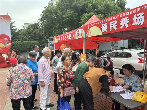 活動(dòng)現(xiàn)場,最引人矚目的莫過于“鄰里惠民季”的暖心布局。社區(qū)不僅聯(lián)動(dòng)中商平價(jià)南湖店、黃鶴樓酒業(yè)、忠林口腔等十余家單位,將優(yōu)惠商品與專業(yè)服務(wù)“搬”到居民家門口,更特別邀請新洲區(qū)邾城街道龍橋村黨支部帶來助農(nóng)專場推介。新鮮飽滿的農(nóng)特產(chǎn)品整齊陳列,龍橋村黨支部書記現(xiàn)場講解產(chǎn)品種植故事,讓居民們在選購優(yōu)質(zhì)食材的同時(shí),為助農(nóng)增收出一份力。此外,“便民秀場”人氣爆棚,縫補(bǔ)、修鞋、磨刀等免費(fèi)服務(wù)點(diǎn)前排起長隊(duì),師傅們嫻熟的手藝解決了居民生活中的“小煩惱”,一句句“太方便了”“太貼心了”成為現(xiàn)場最動(dòng)人的稱贊。