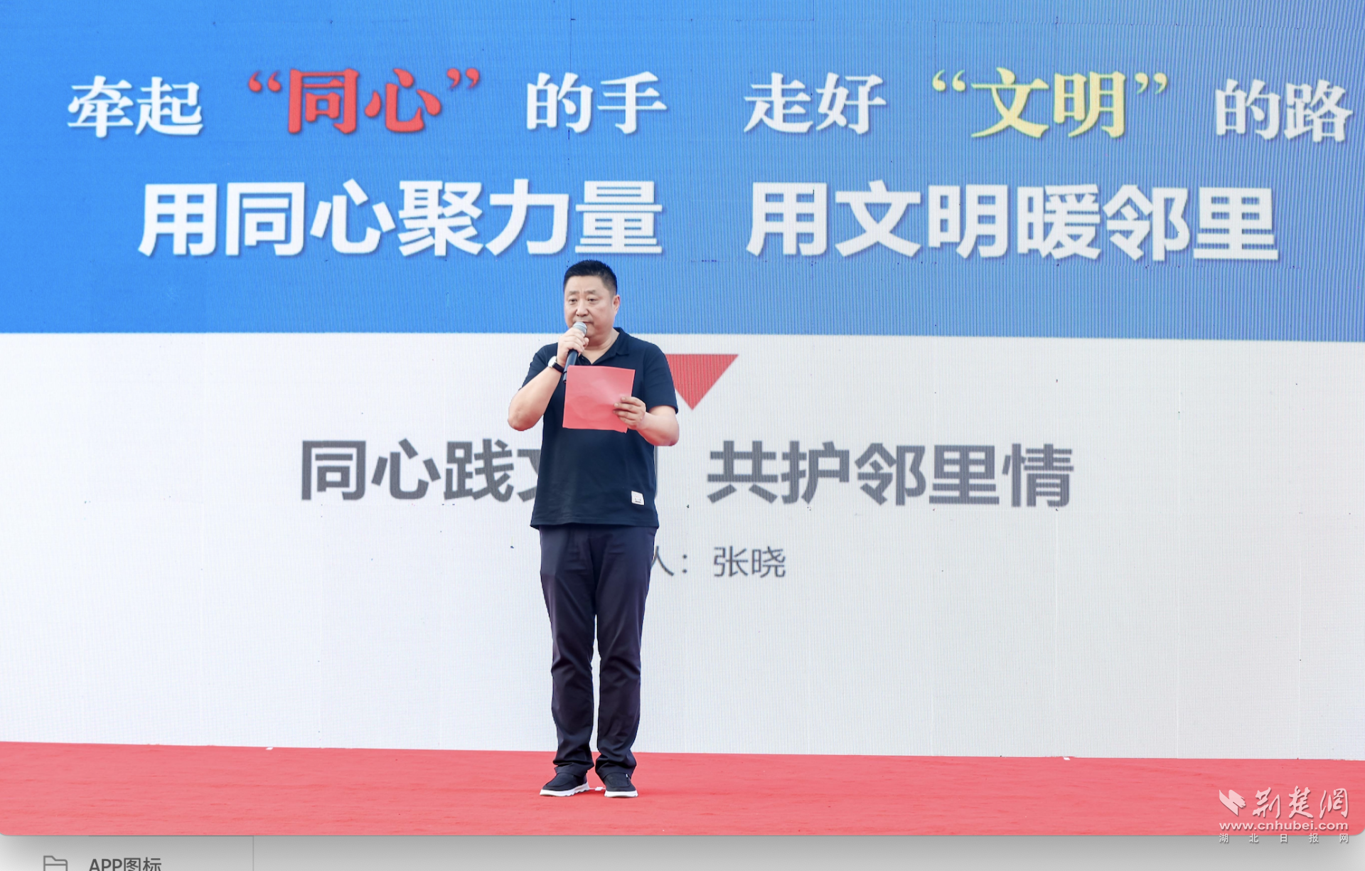 活動特別設置了文明微宣講環(huán)節(jié)。2022年第三季度“湖北好人”、2023年武漢市首屆“同心奮斗者”張曉分享了他的文明實踐故事。作為漢陽區(qū)新的社會階層人士聯(lián)誼會副會長、漢陽區(qū)清露社會工作服務中心主任,張曉以《同心踐文明 共護鄰里情》為題,講述了在日常生活中踐行文明理念的點滴經歷。