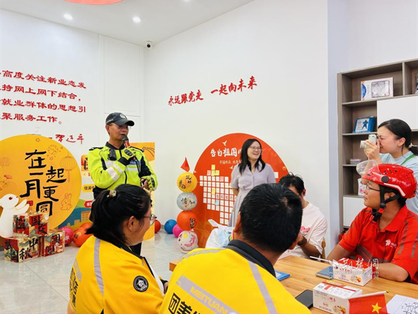 荊楚網(wǎng)(湖北日報網(wǎng))訊(通訊員 劉蘭蘭)9月28日下午,武昌區(qū)黃鶴樓街道新就業(yè)群體服務(wù)驛站、黃鶴先“蜂”新時代文明實踐點內(nèi)暖意融融,一場以“月滿華誕 驛家同歡”為主題的中秋國慶雙節(jié)特別活動在此開展。活動通過一系列精心設(shè)計的環(huán)節(jié),為快遞員、外賣騎手等新就業(yè)群體送上溫暖節(jié)日祝福,搭建互動交流橋梁,切實提升其歸屬感與幸福感。
