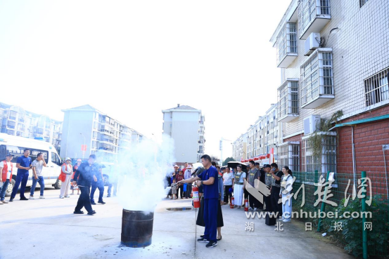廣場(chǎng)一側(cè),先由湘口街道專職消防隊(duì)帶來(lái)一場(chǎng)沉浸式防災(zāi)減災(zāi)知識(shí)課。消防隊(duì)員就滅火器的性能、用途、使用方法、設(shè)備維護(hù)等基本知識(shí)進(jìn)行講解,對(duì)如何正確使用消防栓、鋪設(shè)水帶進(jìn)行了展示,著重講解了滅火器“一搖、二對(duì)、三撥、四壓”的操作技巧和注意事項(xiàng),并指導(dǎo)社區(qū)居民進(jìn)行滅火器實(shí)操演練。“以前覺得滅火器操作很難,掌握技巧一點(diǎn)不難!”參加實(shí)操的居民李大爺說(shuō)道。