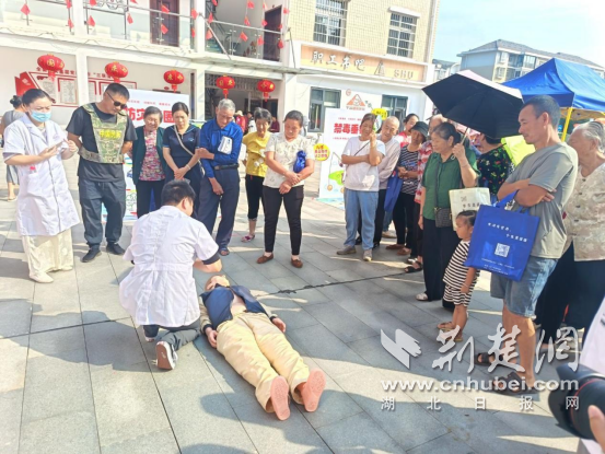 廣場(chǎng)另一側(cè),醫(yī)護(hù)人員鋪開模擬人體模型,演示燒傷包扎與心肺復(fù)蘇?!鞍惹鍧崅冢儆眉啿紡膫谙路酵蠈訉庸潭?,松緊度以能伸入一指為宜;做心肺復(fù)蘇時(shí),按壓深度必須達(dá)5-6厘米,頻率保持每分鐘100-120 次,節(jié)奏就像跟著‘1001、1002’數(shù)數(shù)一樣均勻?!贬t(yī)護(hù)人員一邊說(shuō),一邊用手比劃著關(guān)鍵動(dòng)作。講解完畢,邀請(qǐng)居民實(shí)操,遇到按壓角度偏斜、力度不足的情況,便俯身手把手糾正,耐心調(diào)整姿勢(shì),確保每個(gè)人都能真正掌握正確要領(lǐng)。