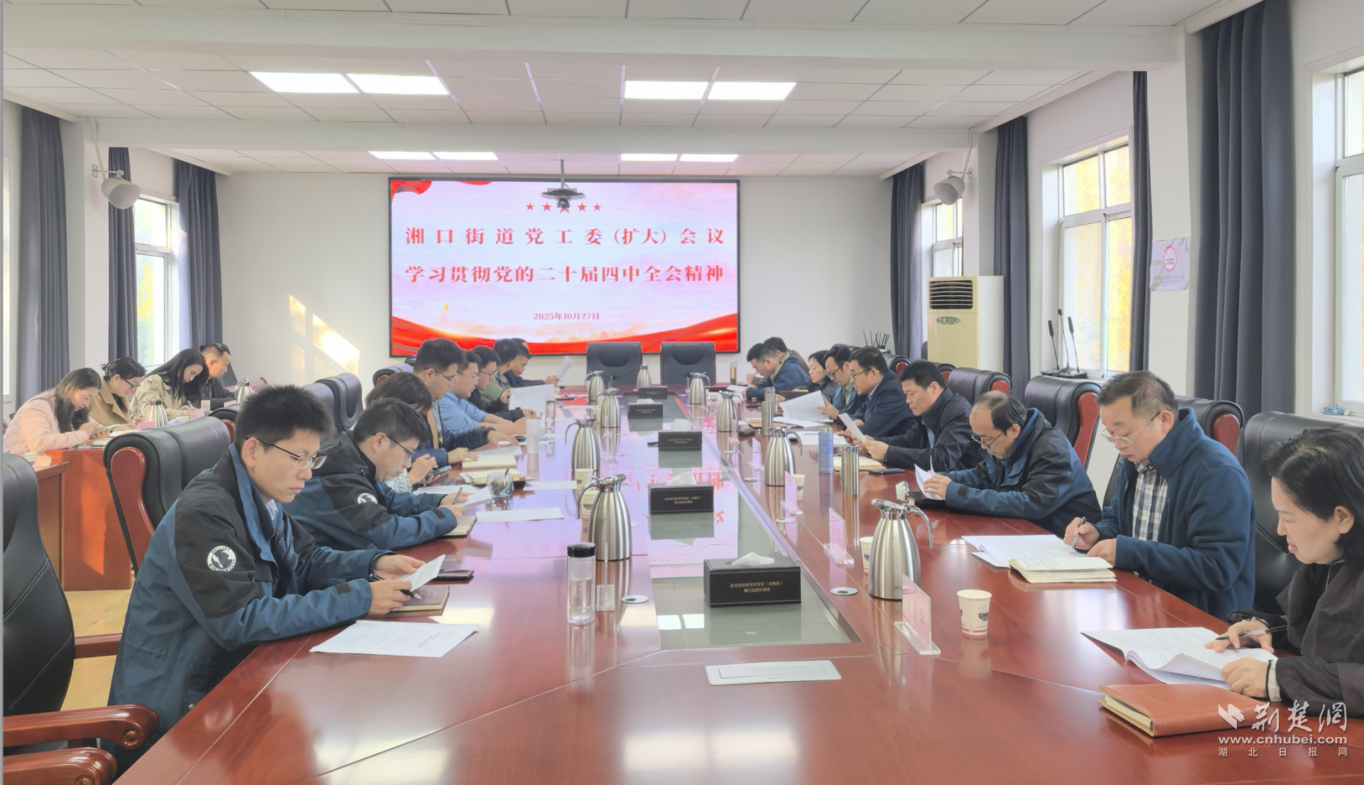 荊楚網(wǎng)(湖北日?qǐng)?bào)網(wǎng))訊(通訊員 謝蓉)10月27日上午,武漢經(jīng)開(kāi)區(qū)湘口街道召開(kāi)黨工委(擴(kuò)大)會(huì)議,傳達(dá)學(xué)習(xí)黨的二十屆四中全會(huì)精神及省委、市委、區(qū)工委(擴(kuò)大)會(huì)議精神。街道黨政領(lǐng)導(dǎo)班子成員、各科室、中心、二級(jí)單位負(fù)責(zé)人及各社區(qū)、村書(shū)記悉數(shù)參會(huì),大家紛紛表示要將思想和行動(dòng)統(tǒng)一到全會(huì)精神上來(lái),不懈努力、接續(xù)奮斗,以更加昂揚(yáng)的斗志、務(wù)實(shí)的作風(fēng),奮力在中國(guó)式現(xiàn)代化進(jìn)程中交出“湘口答卷”。