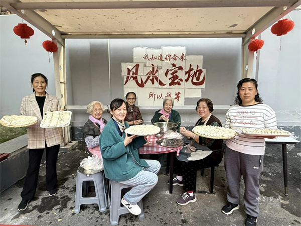 居民志愿者分工協(xié)作,一邊包餃子,一邊嘮家常,分享不同地域的包法與立冬習(xí)俗。形態(tài)各異的餃子擺滿托盤,熱氣騰騰出鍋后,居民們圍坐共品,臉上滿是幸福滿足的笑容。一碗碗熱餃子暖了胃更暖了心,讓深厚的鄰里情誼在香氣中悄然凝聚。