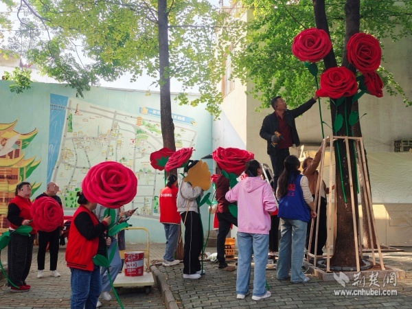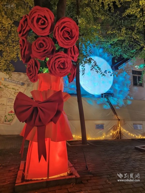 荊楚網(wǎng)(湖北日?qǐng)?bào)網(wǎng))訊(通訊員 陳曉燕 周佳穎)11月5日,武昌區(qū)黃鶴樓街道后宰門(mén)街角一道獨(dú)特的風(fēng)景引人注目,一棵“永不凋零”的“愛(ài)之樹(shù)”絢麗綻放,樹(shù)上盛開(kāi)的巨型玫瑰花與一旁的月球投影裝置相映成趣,與遠(yuǎn)方的黃鶴樓共同構(gòu)成一幅詩(shī)意城市景觀。