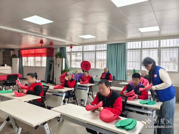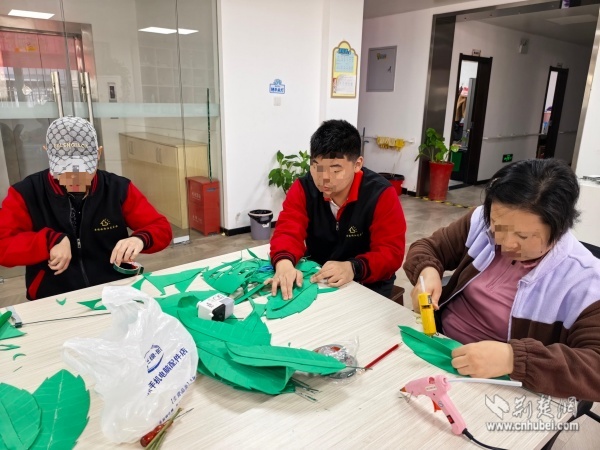 在為期兩周的創(chuàng)作中,陽(yáng)光家園學(xué)員在志愿者的陪伴下,從設(shè)計(jì)畫(huà)圖、精準(zhǔn)剪裁到立體塑形、精細(xì)組裝,系統(tǒng)學(xué)習(xí)并逐步掌握了銀杏葉與玫瑰花的制作技巧。“第一次參與制作這么大的藝術(shù)作品,沒(méi)想到我也能創(chuàng)造出這么美的作品!”一位學(xué)員自豪地展示成果。創(chuàng)作過(guò)程中,殘健伙伴分工協(xié)作、各展所長(zhǎng),在默契配合中締結(jié)了深厚情誼。