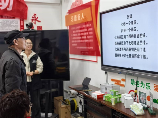 活動(dòng)以繞口令熱身開(kāi)場(chǎng)。曾講授量子力學(xué)的老教授們,此刻神情專注地逐字讀著"炮兵怕把標(biāo)兵碰",略顯生澀卻認(rèn)真的模樣,引得現(xiàn)場(chǎng)歡笑聲與掌聲不斷,氣氛瞬間活躍起來(lái)。