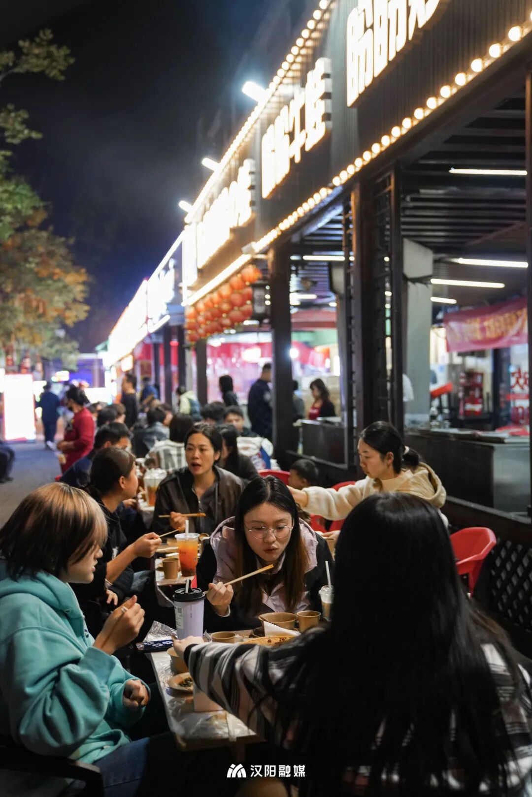 整條街都浸在煙火氣里,炭火噼啪聲、食客歡笑聲、老板吆喝聲交織,空氣中肆意飄著孜然香,食客們左手正舉著烤魷魚(yú)大快朵頤,右手拎著冰啤酒開(kāi)懷暢飲,剛想擦擦嘴角的油漬,轉(zhuǎn)眼又被新出爐的烤腦花勾走了魂。不少老饕直呼:"走不出這條街了,簡(jiǎn)直是美食版'神仙打架',我的胃已經(jīng)宣布在漢陽(yáng)'定居'咯!"