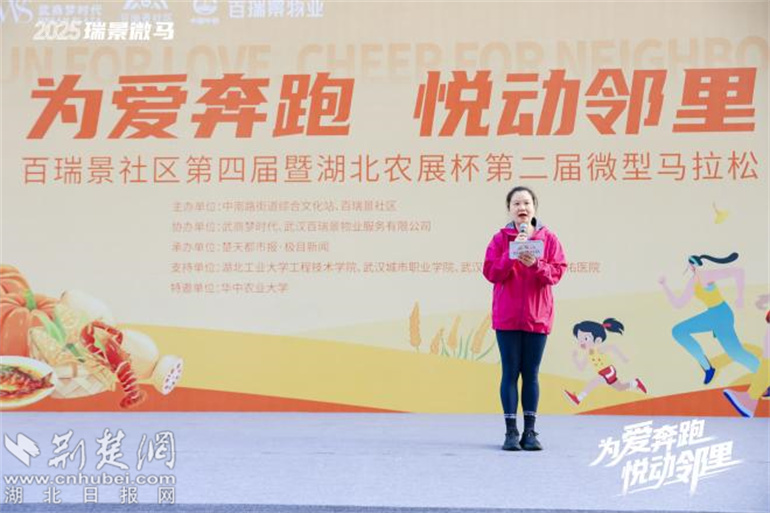 荊楚網(wǎng)(湖北日?qǐng)?bào)網(wǎng))訊(通訊員 王琪琳)金秋送爽,活力涌動(dòng)。11月16日上午,武商夢(mèng)時(shí)代的賽道上,一面印著“鄰里百瑞景,萬戶一家親”的橙色旗幟格外醒目——這是武漢市武昌區(qū)中南路街道百瑞景社區(qū)第四屆暨湖北農(nóng)展杯第二屆微型馬拉松的現(xiàn)場(chǎng)。500名身著統(tǒng)一參賽服的跑者中,有攜手沖線的親子家庭,有白發(fā)蒼蒼卻精神矍鑠的老街坊,也有首次參賽的大學(xué)生志愿者。