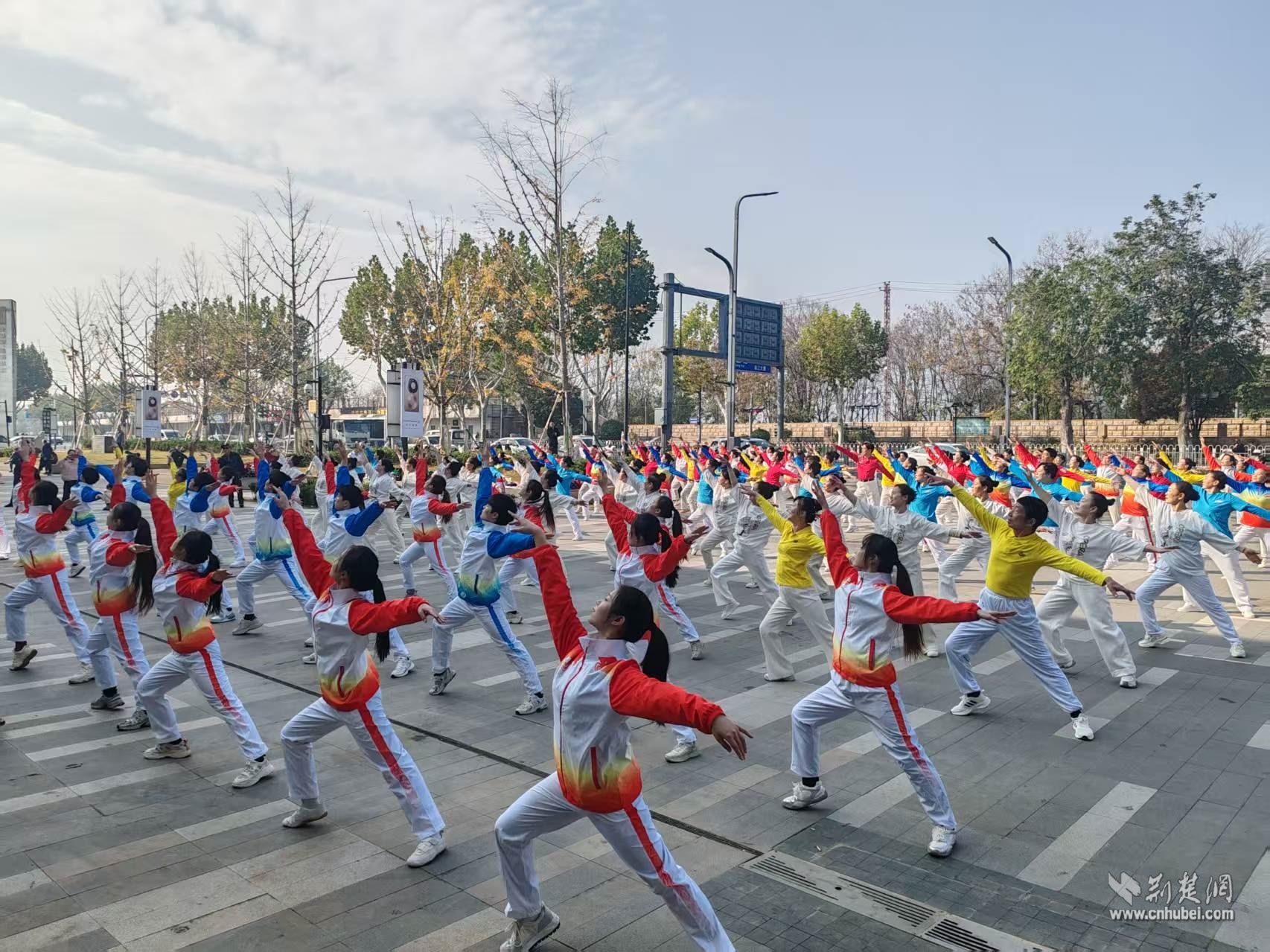 伴隨著氣勢(shì)恢宏的《領(lǐng)航》旋律響起,由武昌黃鶴之星文化驛站成員、轄區(qū)文藝團(tuán)隊(duì)及武漢音樂(lè)學(xué)院學(xué)生組成的140人表演隊(duì)伍翩然起舞。舞者們身著亮麗服裝,步伐整齊有力,動(dòng)作舒展昂揚(yáng),如一面面流動(dòng)的旗幟,在冬日的陽(yáng)光下?lián)]灑著自信與熱情。在武漢歌舞劇院許峰老師的現(xiàn)場(chǎng)帶領(lǐng)下,整場(chǎng)表演張弛有度、情感充沛,生動(dòng)詮釋了新時(shí)代的朝氣與力量,贏得了在場(chǎng)觀眾陣陣掌聲與喝彩。