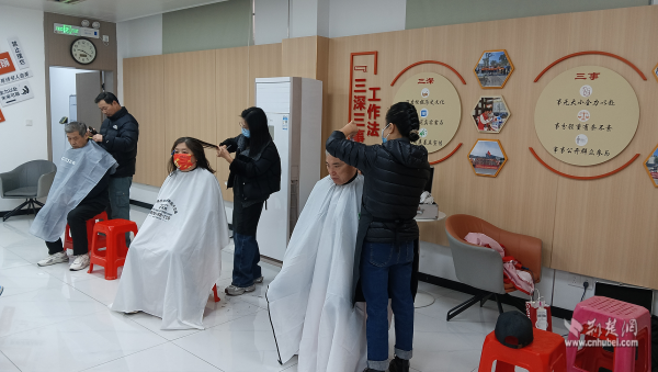 活動(dòng)最后是便民服務(wù)環(huán)節(jié)。社區(qū)對(duì)接武昌“新興學(xué)院”天姿美容美發(fā)學(xué)校資源開(kāi)展義務(wù)理發(fā)服務(wù)。志愿者們提前布置好服務(wù)區(qū),認(rèn)真做好工具消毒,隨后耐心詢(xún)問(wèn)每一位前來(lái)理發(fā)的流動(dòng)黨員和老年人的需求,憑借嫻熟技藝為大家精心修剪發(fā)型?!安怀錾鐓^(qū)就能享受到這么好的服務(wù),還能和黨員同志們一起學(xué)習(xí)交流,心里特別暖?!币晃粍偫硗臧l(fā)的老人滿(mǎn)意地說(shuō)道。現(xiàn)場(chǎng)洋溢著濃濃的鄰里溫情。