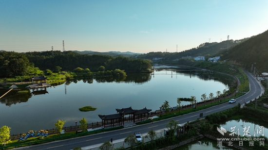 白瓦青磚錯落有致,整潔塆落宜居宜游,黑化亮化的旅游公路蜿蜒延伸,依河而建的游步道外水清岸綠,網(wǎng)紅吊橋周邊游人如織……如今的英山,青山含笑,綠水含情,處處皆景。