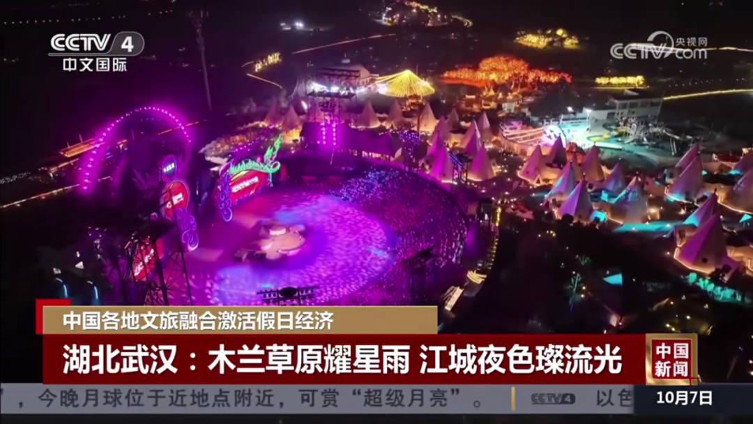 10月7日:CCTV-4《中國(guó)新聞》聚焦報(bào)道黃陂木蘭草原文旅融合激活假日經(jīng)濟(jì):木蘭草原耀星雨,江城夜色璨流光。