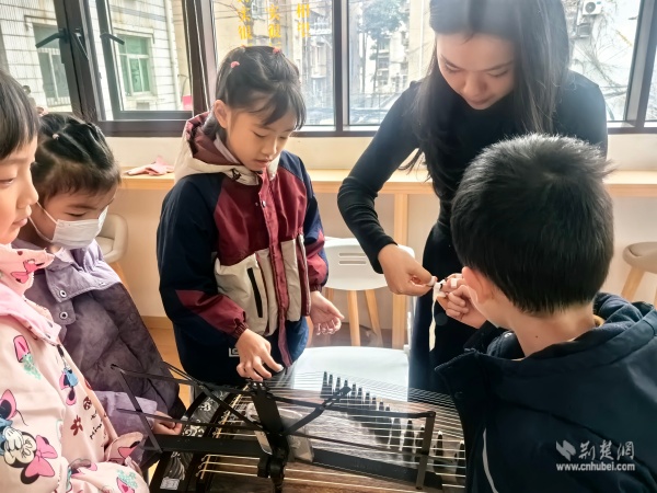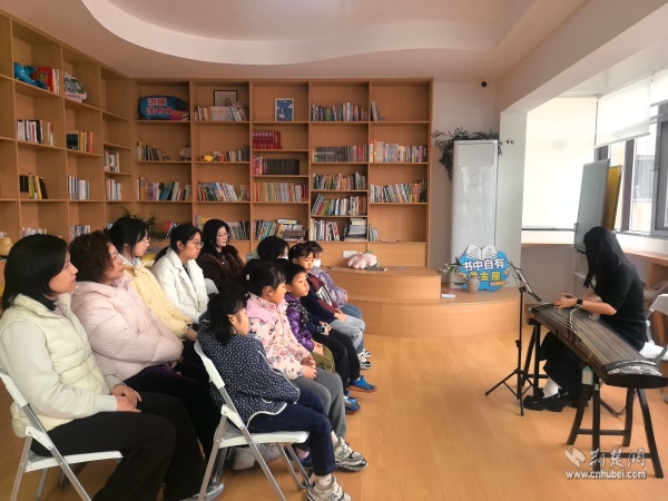 當(dāng)天上午,黃鶴書房內(nèi)箏聲潺潺,以“琴潤書香遇知音”為主題的古箏生活美學(xué)雅集在這里上演。二十余位居民齊聚一堂,在專業(yè)老師的帶領(lǐng)下,共同走進(jìn)古箏的悠遠(yuǎn)世界。