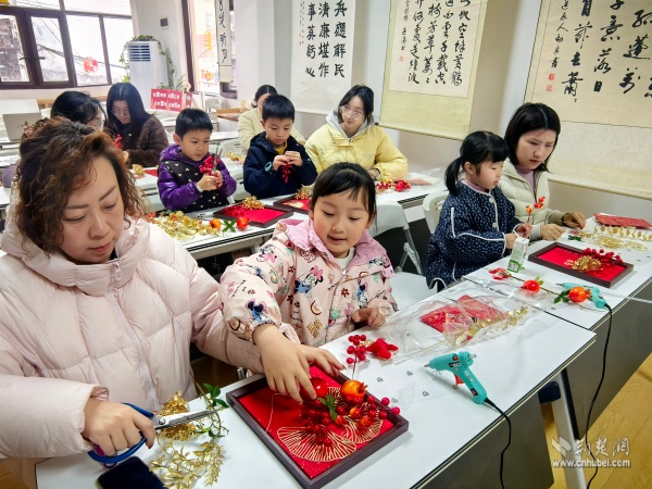 為迎接新春佳節(jié),傳承非遺手工技藝,“吉年添彩·手作年宵花畫框共創(chuàng)會(huì)”也在書房內(nèi)熱烈展開。活動(dòng)以“筆墨書香里尋年味,非遺手作中傳文脈”為主題,吸引了眾多親子家庭與手工愛好者參與。