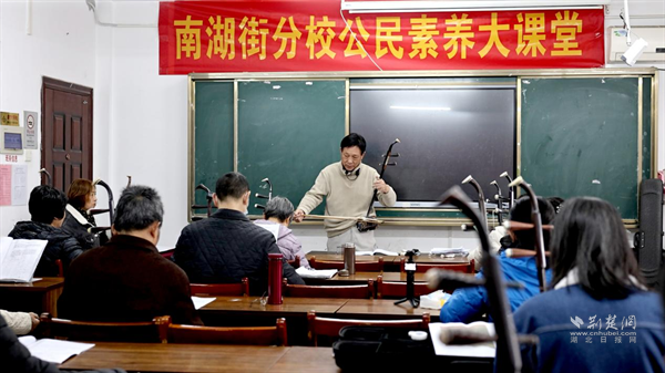 荊楚網(wǎng)(湖北日報網(wǎng))訊(記者 李燕 通訊員 羅嘉柯)早上九時,武昌區(qū)南湖街道一棟樸素的三層小樓已開始躍動起生活的韻律。二胡聲悠揚,葫蘆絲清亮,提著樂器的阿姨們步履輕快、笑意盈盈地走進樓內。這里是南湖街老年大學,一個每日門庭若市、笑語盈窗的地方。每一位走進這里的老人,都仿佛推開了另一扇生活的門——門外是瑣碎日常,門內卻是歌聲、筆墨、舞蹈與友誼。而這幅生機盎然的景象,離不開一位始終與他們并肩同行的人——校長李雨嘉。