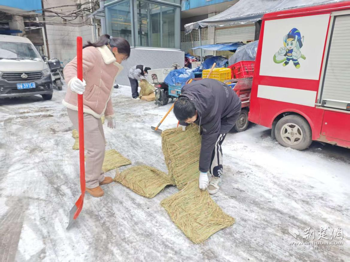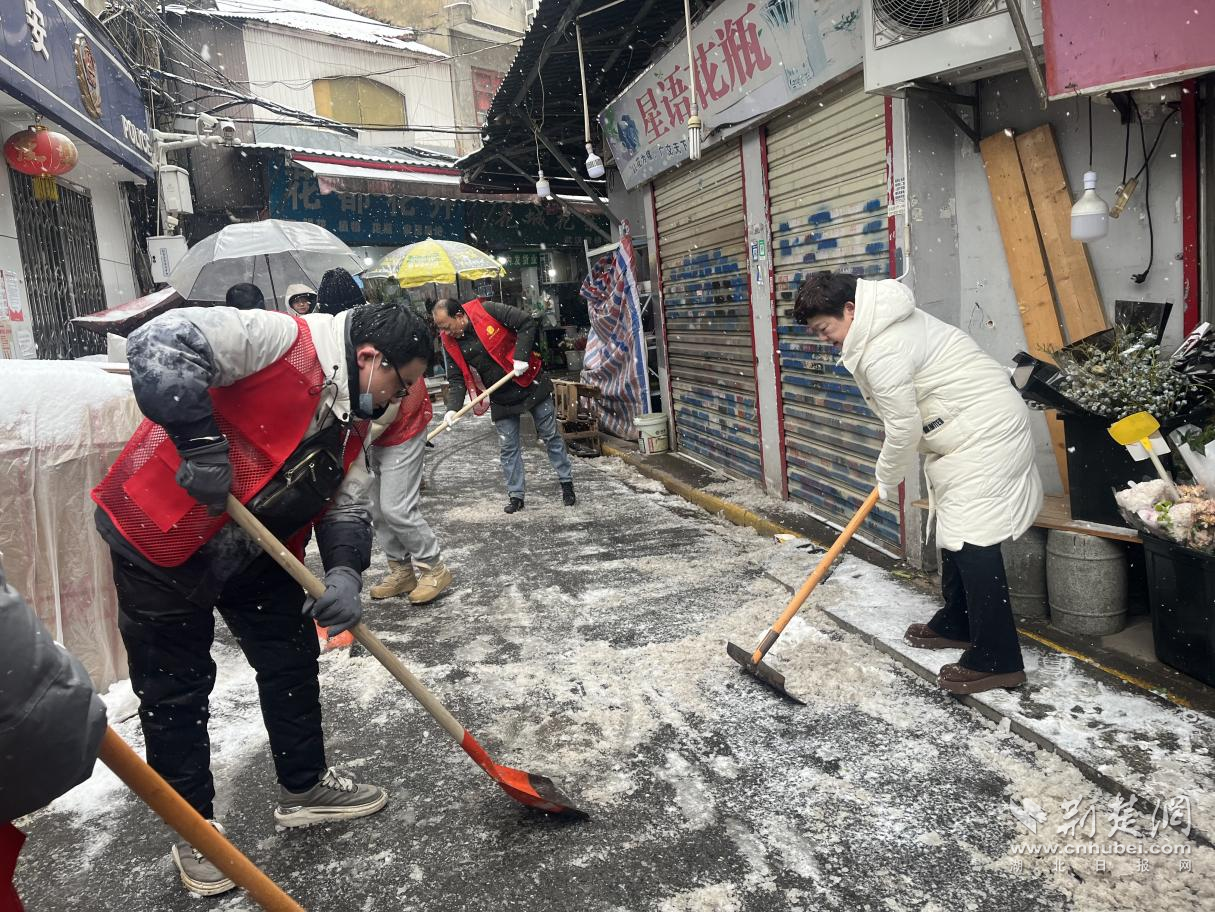 當天清晨,清雪人員已在轄區(qū)出行要道、社區(qū)小巷等多個點位同步作業(yè)。街道機關干部帶隊下沉一線,來自轄區(qū)的多支力量陸續(xù)到位。江漢區(qū)科學技術協會、區(qū)湖泊管理所等單位黨員積極參與行動;新華路體育中心、南國中心等單位也主動對接,紛紛派出人員和工具協同作業(yè)。