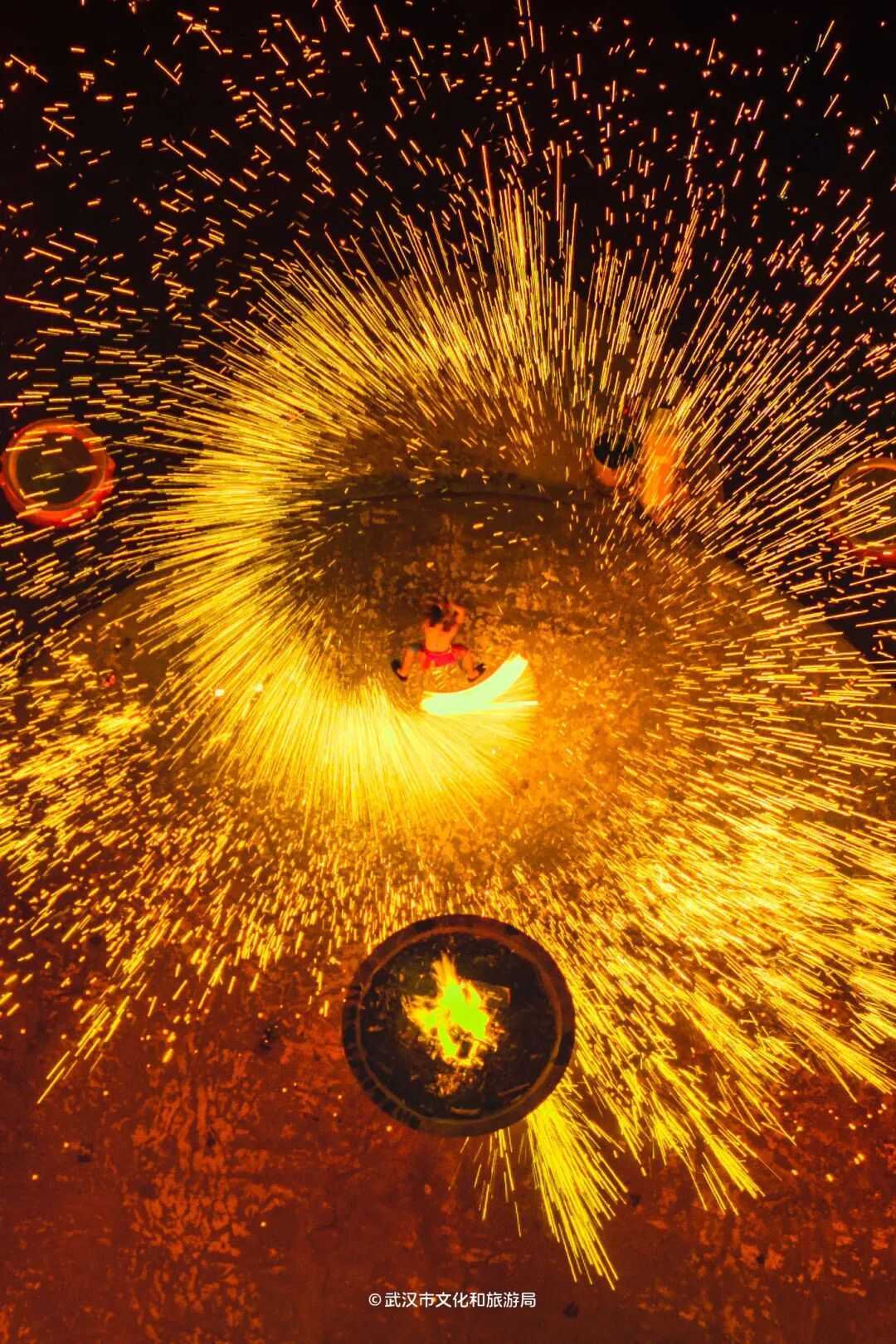 ??木蘭不夜城非遺賀春年以“火”為核心,上演打鐵花、火壺、火刀等震撼視覺(jué)的非遺特技演出,點(diǎn)亮夜空,祈愿新年紅紅火火。