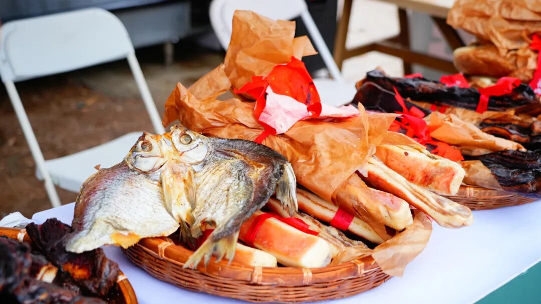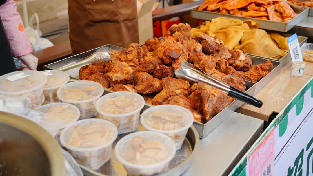 作為活動的重要組成部分,特色年貨市集“滿倉吉市”匯集了滿滿的煙火氣與本土特色。黃陂三鮮、鴨子煲、清湯鵝等地道美食香氣四溢,喚醒味蕾記憶。本地農(nóng)產(chǎn)品等特色攤位也一字排開,好不熱鬧。朝陽村的豆絲攤位前早早排起了長隊(duì)。朝陽村黨支部書記、村委會主任熊偉介紹:“今天我們準(zhǔn)備了200斤米漿,現(xiàn)場制作近千張豆絲免費(fèi)供游客品嘗,既讓大家嘗到家鄉(xiāng)味,也帶動了村里油、土雞、糯米等農(nóng)副產(chǎn)品的銷售?!?/p>