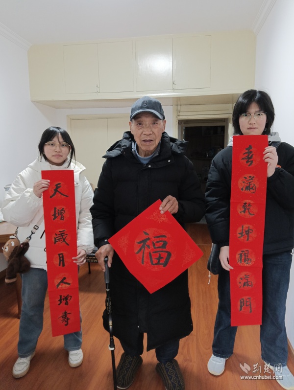 針對社區(qū)高齡、獨居老人,志愿者們開展“敲門行動”,走進(jìn)“鶴耋安”重點關(guān)愛對象家中。在88歲的李奶奶家門口,志愿者們將一副寫有“福壽安康”的春聯(lián)認(rèn)真貼好,紅紙金字映亮了老人的笑臉?!澳銈円粊恚依锞蜔狒[了,這春聯(lián)比買的還暖心!”李奶奶說道。每到一戶,志愿者們都送上手寫春聯(lián)與“?!弊?,幫忙排查水電隱患,陪老人聊家常、憶往昔,用陪伴驅(qū)散冬日的冷清。