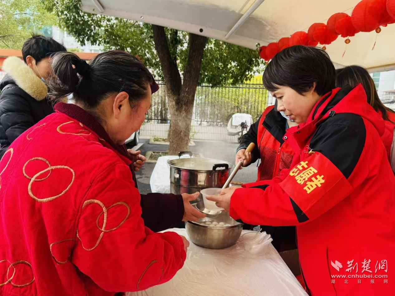熱氣騰騰的湯圓被分發(fā)給現(xiàn)場(chǎng)居民。通訊員供圖