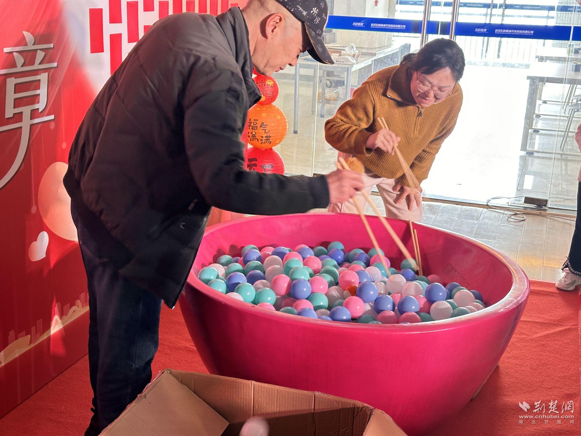 有人手法嫻熟,動作穩(wěn)??;有人略顯緊張,幾次失手,引得周圍同事笑聲不斷。前十名獲得“團圓福袋”,現(xiàn)場歡呼此起彼伏。