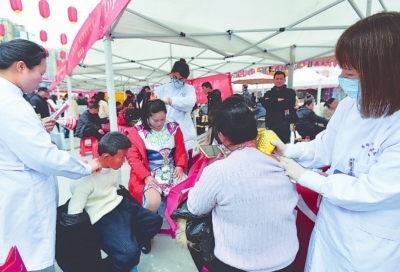 蔡甸區(qū)中醫(yī)院的醫(yī)護人員為居民刮痧診療。