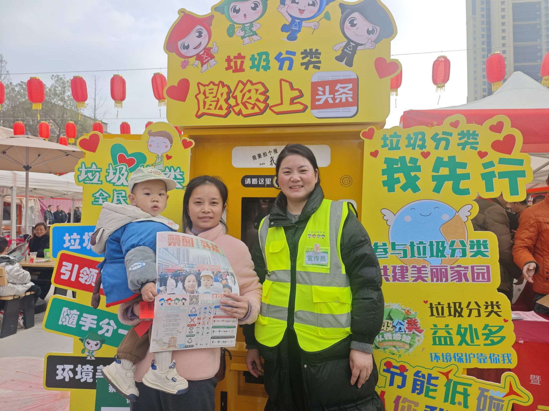 現(xiàn)場(chǎng)還設(shè)置文明實(shí)踐宣傳點(diǎn),蔡甸區(qū)委宣傳部志愿者向居民發(fā)放文明餐桌、移風(fēng)易俗宣傳冊(cè)。蔡甸區(qū)城市管理執(zhí)法局創(chuàng)新運(yùn)用“AI文明拍報(bào)機(jī)”宣傳垃圾分類知識(shí),引導(dǎo)居民踐行“武漢以我為榮”文明素養(yǎng)提升行動(dòng)?!斑@個(gè)形式太有意思了,這份專屬的‘文明頭條’報(bào)紙,在趣味體驗(yàn)中就深化了垃圾分類、文明公約等知識(shí)記憶?!睅е⒆訁⑴c的張女士興奮地展示著頭條報(bào)紙。
