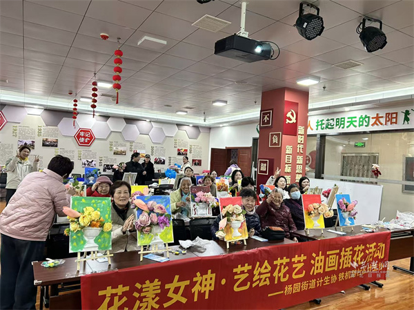 活動(dòng)現(xiàn)場(chǎng),長(zhǎng)桌上整齊擺放著畫布、油彩、花材等材料。啟晨便民服務(wù)中心專業(yè)老師細(xì)致講解油畫色彩搭配、筆觸運(yùn)用技巧,手把手指導(dǎo)花材修剪、造型搭配要領(lǐng),耐心解答大家的創(chuàng)作疑問。居民們興致盎然,或蘸取油彩在畫布上揮灑創(chuàng)意,暈染出五彩斑斕的專屬畫作;或?qū)W⑿藜艋ㄖ?、搭配層次,一束束生機(jī)盎然的花藝作品接連成型,鄰里間相互交流心得、分享技巧,現(xiàn)場(chǎng)笑語不斷。