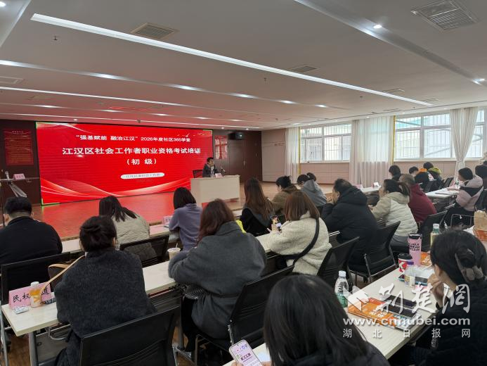 荊楚網(wǎng)(湖北日報網(wǎng))訊(記者 何婧 通訊員 余曉潔)3月6日,江漢區(qū)社會工作者職業(yè)資格考試(初級)集中培訓在北湖街道環(huán)保社區(qū)開班,培訓采取“線下主會場+視頻分會場”形式開展,全區(qū)各街道及相關(guān)區(qū)直單位的510余名備考人員同步參訓。此次培訓標志著江漢區(qū)“專業(yè)賦能·持證攻堅”專項提升行動進入系統(tǒng)推進階段。