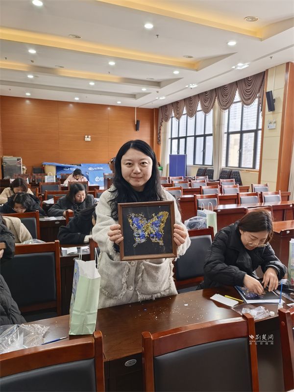 螺鈿手工擺件制作環(huán)節(jié),專業(yè)老師講解了螺鈿工藝的千年歷史與制作技巧,演示了底座處理、螺鈿粘貼、細節(jié)修飾全流程。女職工們領(lǐng)取專屬物料包,發(fā)揮創(chuàng)意搭配色彩、設(shè)計造型,工作人員全程提供協(xié)助。創(chuàng)作完成后,大家紛紛展示成品、分享心得,在動手實踐中感受非遺魅力,收獲滿滿成就感。