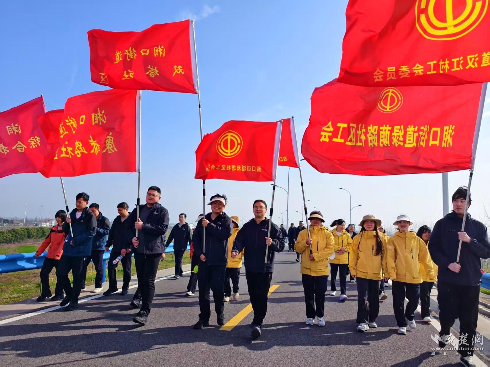 上午9時(shí)整,一聲清脆的鳴槍劃破晴空,健步走活動(dòng)正式拉開(kāi)序幕!全體職工精神抖擻、意氣風(fēng)發(fā),身著統(tǒng)一的運(yùn)動(dòng)裝,從喜鵲湖有序上堤,向著大垸子閘奮勇前行。腳下,是蜿蜒整潔、風(fēng)景如畫(huà)的喜鵲湖最美鄉(xiāng)村公路;身旁,是柳綠花紅、生機(jī)盎然的田園盛景;耳畔,是同事間的歡聲笑語(yǔ)與春日的鳥(niǎo)鳴啾啾。大家或并肩漫步、暢談心聲,或闊步前行、舒展筋骨,將工作的疲憊與壓力,盡數(shù)消散在這春風(fēng)拂面的愜意之中,沉浸式感受漢水之南的靈秀與壯闊。