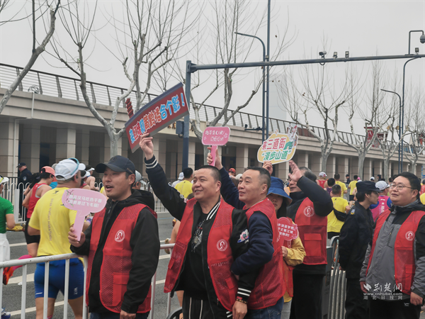 清晨六時,天剛微亮,全體志愿者已身著統(tǒng)一志愿馬甲到崗到位,迅速投入賽前準(zhǔn)備工作。賽事開跑后,各服務(wù)點位的志愿者們分工協(xié)作、忙而有序:一句句“調(diào)整呼吸,保持節(jié)奏”“加油,你是最棒的”的暖心叮囑,讓跑者在奮力奔跑中倍感溫情;賽道兩側(cè),志愿者們結(jié)合街道特色,手持“漢味美食第一巷”“來三道街漫步山道”等定制手舉牌,與彩旗交相輝映,大家齊聲高喊加油口號,激昂的歡呼聲此起彼伏,成為激勵跑者奮勇前行的暖心力量,用最熱烈的方式為每一位跑者鼓勁喝彩。