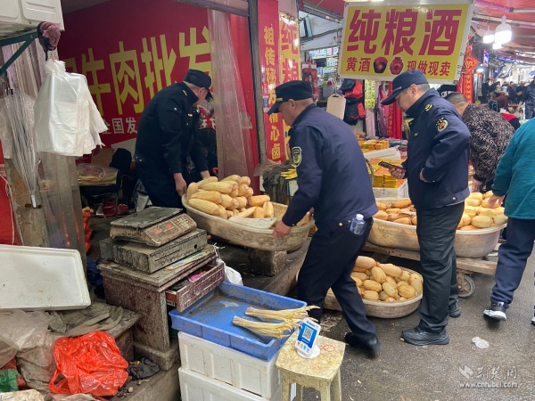 執(zhí)法隊(duì)員為商戶搬運(yùn)貨品。 通訊員供圖